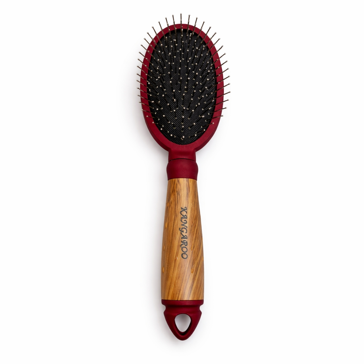 The Kangaroo metal pin hair brush is designed for deep detangling of thick, heavy or long hair. Equipped with strong steel bristles and a flexible cushion base, it helps remove stubborn tangles with better grip and control.